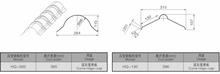 Metal ridge cap is recommended to prevent water, rain or snow leakage, for industrial and residential applications, enjoying simple installation. Ridge-stepping on cap is making match with step tile. Metal ridge cap roll forming machine is the essential for its production.