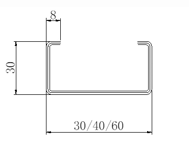 The door guide is mostly U section in 1mm to 2mm thickness. The raw material is galvanized steel, stainless steel, etc.